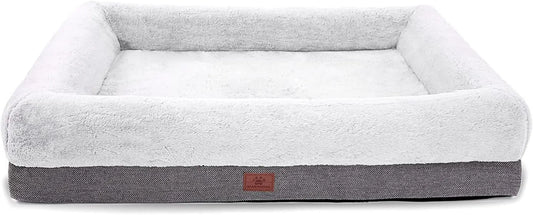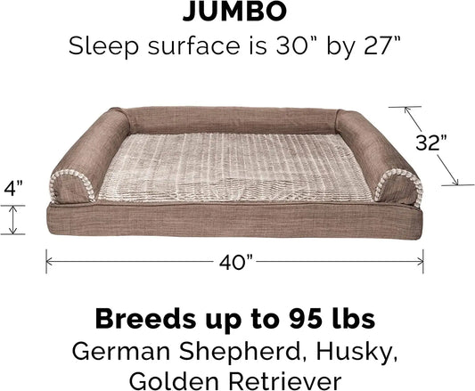 Orthopedic Dog Bed MADE IN USA - for Large Dogs W/ Removable Bolsters & Washable Cover, for Dogs up to 95 Lbs - Luxe Faux Fur & Performance Linen Sofa - Woodsmoke, Jumbo/Xl
